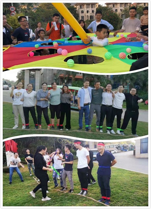 看完展覽,到達河源客天下辦理酒店入住,稍作休息,開始【草坪趣味團建】活動。跳青蛙、打地鼠、五人六足、拔河等游戲項目,大家全身心的投入,既認真又活潑。小朋友們在“打地鼠”的環(huán)節(jié),盡顯活力,大展身手,其樂融融,每個人臉上都洋溢著簡單而快樂的笑容。