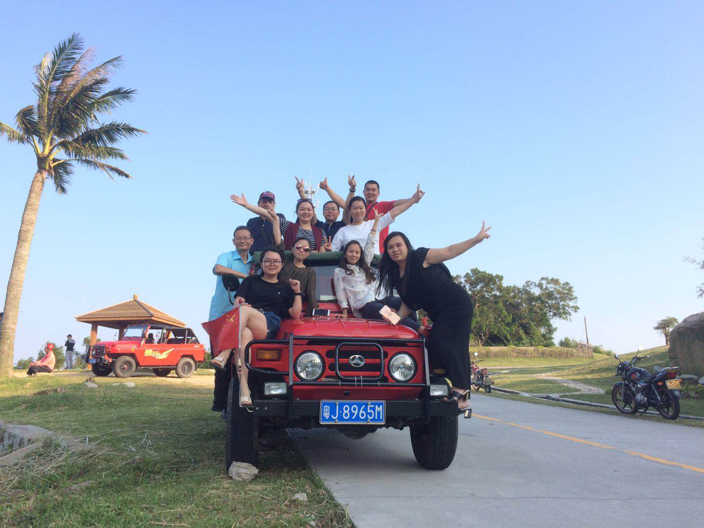 金秋十月,秋高氣爽的季節(jié)。20171021~22日光大公司組織員工到江門臺(tái)山下川島兩天游。第一天早上7:30,各位家人準(zhǔn)時(shí)在寫字樓集合出發(fā),歷經(jīng)四小時(shí)到達(dá)了下川島王府洲旅游區(qū)。旅游區(qū)位于下川島南部的南澳灣,海灣呈月牙形,三面奇峰環(huán)繞,環(huán)境幽靜。海濱沙灘長(zhǎng)1600米,海水清澈、灘平浪靜、白沙細(xì)軟,為天然優(yōu)質(zhì)的海濱浴場(chǎng)。大家紛紛卸下身上厚重的行李,攜家眷好友在沙灘上追波逐浪,玩得不亦樂(lè)乎;亦或者陪伴小孩,堆沙堡,覓尋魚蟹;也有家人選擇刺激的探險(xiǎn)之旅,駕上越野車馳奔于林間小道,路上一望無(wú)際的美景盡收眼底。到達(dá)山頂上,大自然那鬼斧神工鐫刻出一幅幅美不勝收的畫面,換來(lái)了家人們情不自禁的感嘆,面對(duì)此情此景,家人們紛紛在車上擺好pose,拍下了合照紀(jì)念,并留下豪言“戰(zhàn)狼3拍攝現(xiàn)場(chǎng)”。